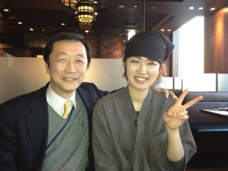 横浜スカイビルの「北海道」でアルバイトとして働く福原緑さんとツーショット(写真)。福原緑さんは、浜田市出身で横浜国立大学に通っている。松江北高の先輩である高橋寧さんと「北海道」に飲みに行ったときに、店長が「島根県出身の子がいます」ということで紹介してくれた。後日もう一人、益田市出身で慶應大学に通う村木功治くんという男の子もアルバイトでいることわかり、その2人を誘って3人で飲んだ。